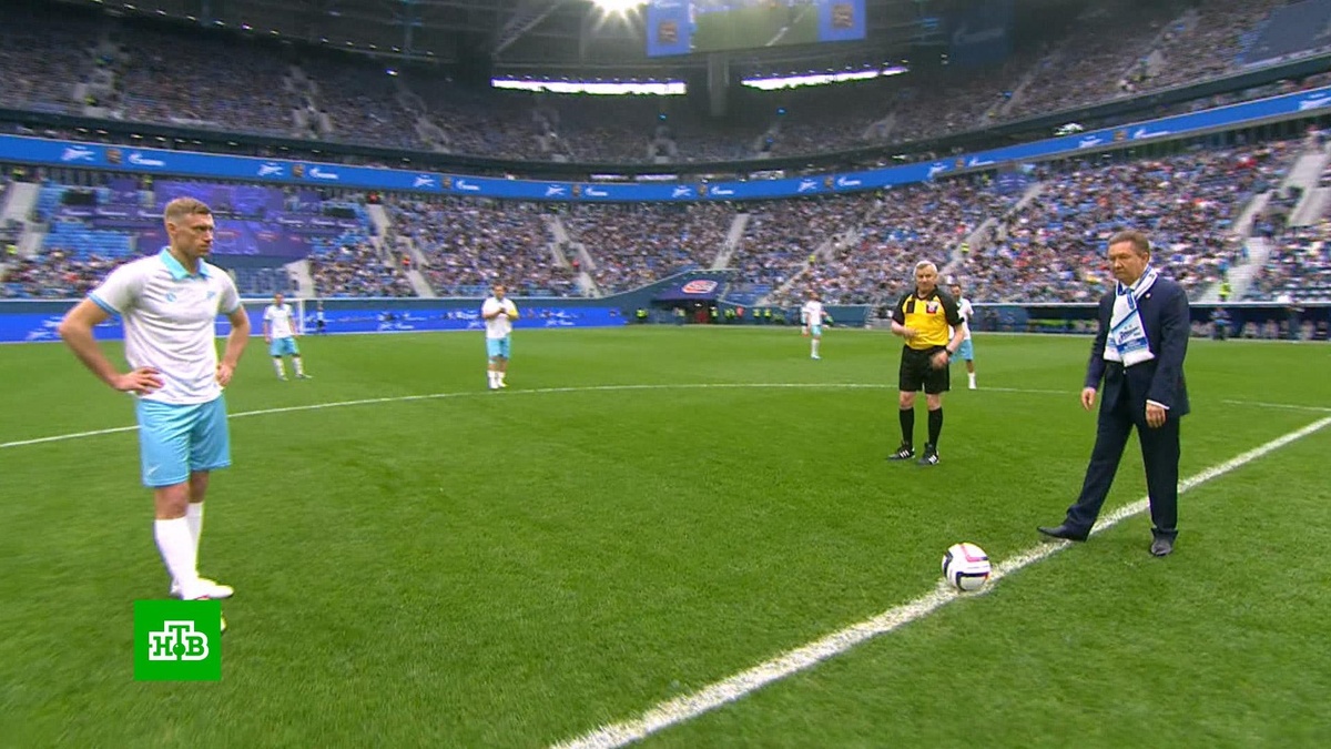 Главе «Газпрома» — официального спонсора клуба-юбиляра — доверили и сделать первый символический удар по мячу. Матч завершился со счетом 3:1 в пользу команды «Зенит Санкт-Петербург». В составе победителей голы забили Александр Кержаков (5-я минута), Андрей Аршавин (24) и Александр Анюков (30). У проигравших — «Зенит Ленинград» — отличился Павел Погребняк (66).