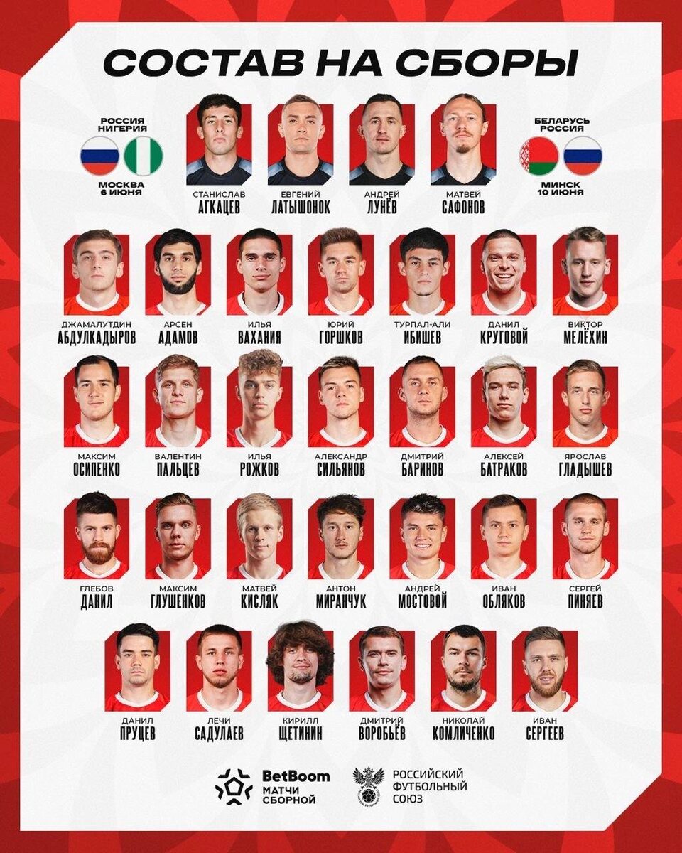 🇷🇺🔥 Состав России на товарищеские матчи против Нигерии и Беларуси 6 и 10 июня