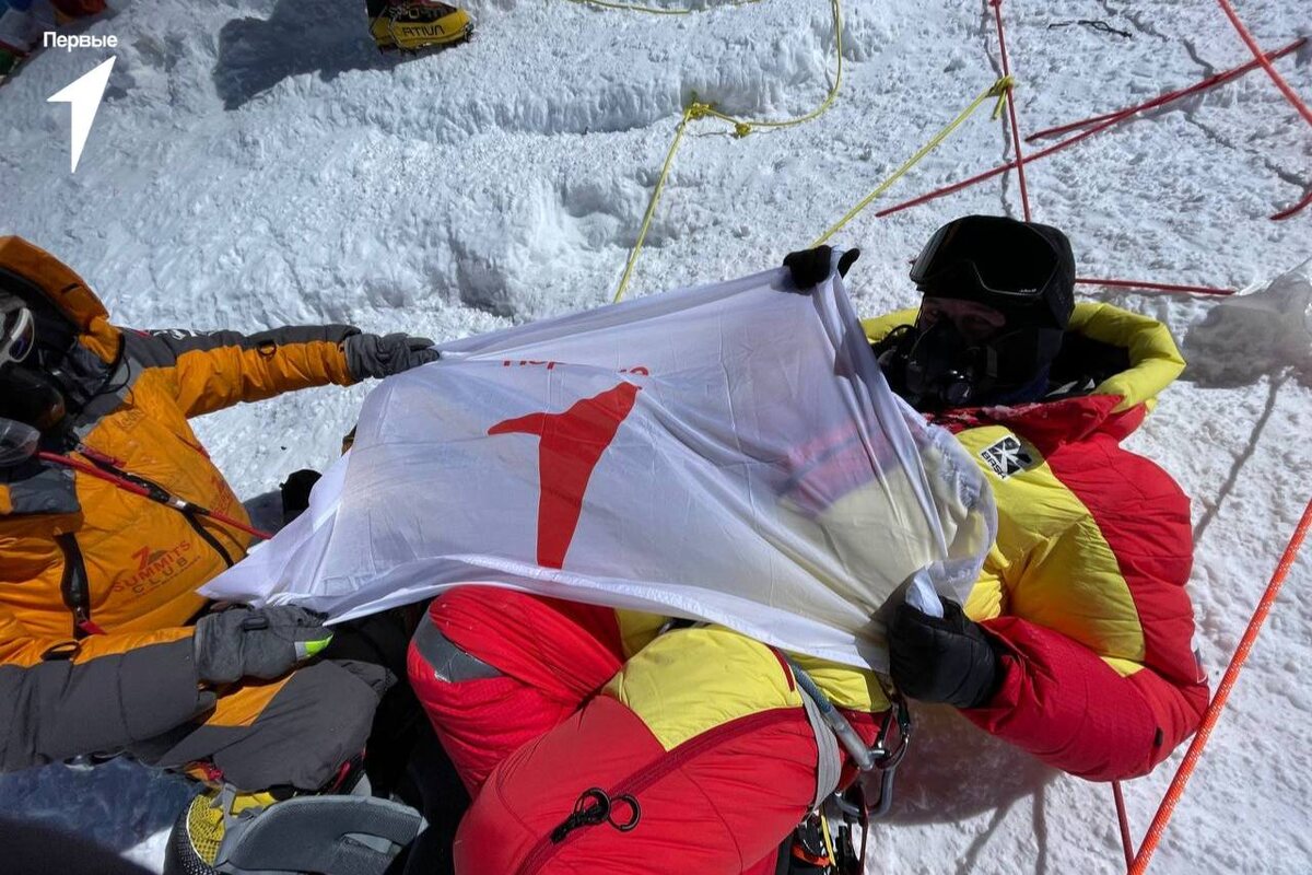 Российский космонавт Сергей Рязанский поднялся на Эверест вместе с флагом Движения Первых