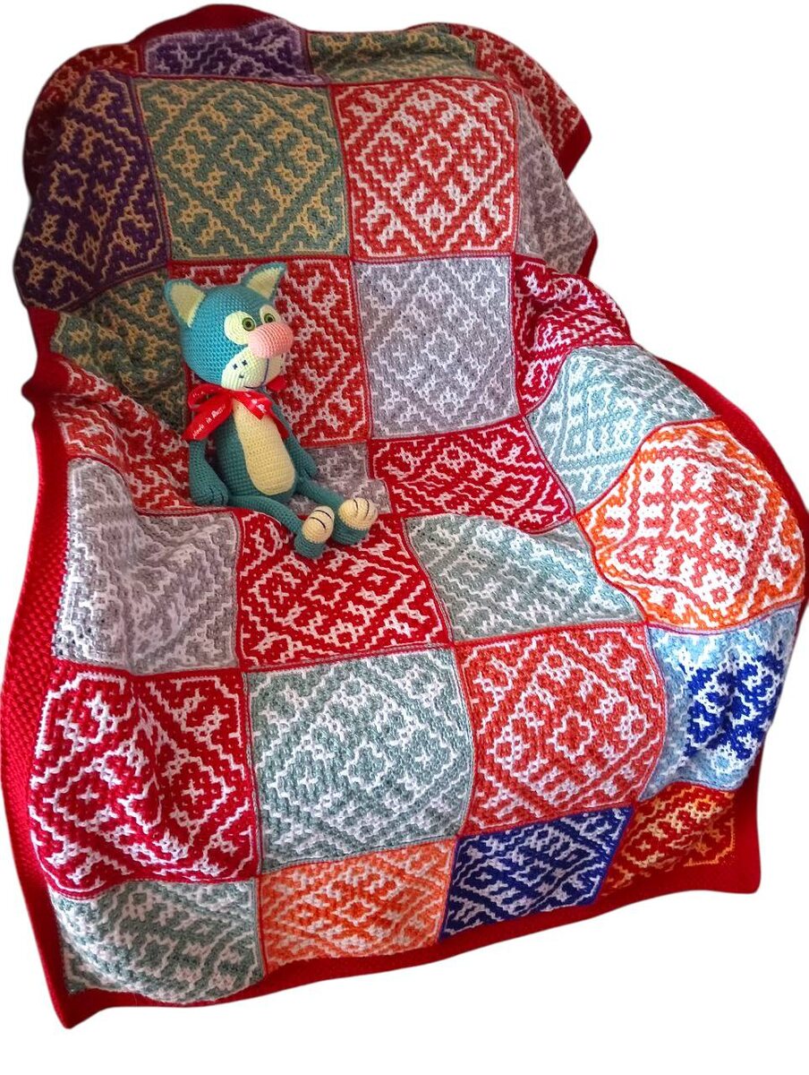 Плед из мотивов. Новости наших чатов Работа Натальи по схеме «Квадрат в день»🔥 Напомню, что в проекте есть схемы трех мотивов, которые отлично комбинируются друг с другом. А можно связать их единым полотном, без сшивания. Квадрат в день: чат и схемы https://t.me/kvadratgendina