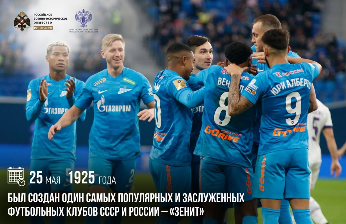 Именно в этот день на базе Ленинградского металлического завода были организованы футбольные команды физкультурного кружка. За столетнюю историю название клуба менялось трижды: сначала ЛМЗ, в первых чемпионатах СССР — «Сталинец», а c февраля 1940 года — уже «Зенит».