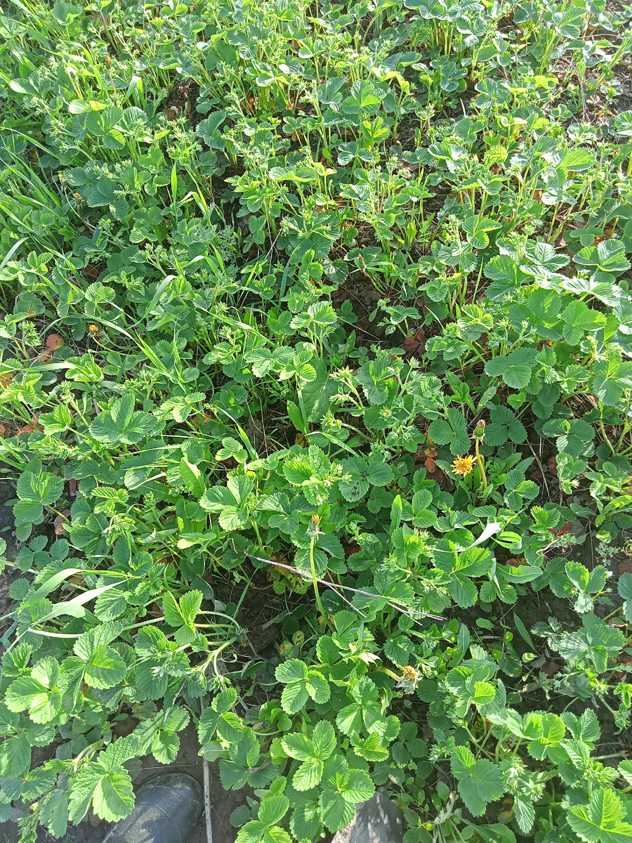 Однажды у меня состоялся странный диалог с покупательницей по поводу клубники садовой. - Лена, ты вроде Викторию продаешь? Крупная? Почём? - Ну да, продаю, вот у меня и объявление есть - "продам клубнику садовую". Там и цены подписаны, и фото есть. - Ну я видела твои объявления, но мне Виктория нужна... В общем, договорились наконец. Но я поняла, что ягода клубника для многих делится не на дикорастущую и садовую, а на клубнику и Викторию... С тех пор в объявлениях указываю так: "клубника (виктория)". Чтобы клубника, то бишь виктория, выросла, весной надо подготовить кустики к плодоношению. Обработать, почистить от лишнего, подкормить. Инструкцию здесь писать не буду - их на дзене и без меня достаточно, на любой вкус. Расскажу, как полола. Я теперь весь из себя такой деловой фермер, сажаю клубнику не чтоб себе были ягодки, а чтоб заработать. Посадочную площадь с осени расширила, оттяпав уголок от картошкиной гряды. Итак, стою, никого не трогаю, удаляю сорняки. Очень уж они тесно с то