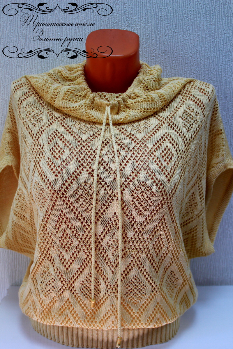 Размер: OverSize (примерно 48-54) Пряжа: основная нить - Индонезийский бобинный хлопок 1700м/100г в 3 сложения, цвет Экрю. Дополнительная нить - тонкая вискоза, полиэстер или любая швейная нить. Переплетение: ложный ажур (панчлейс), резинка 2х2 (промышленный вариант) Плотность вязания: панчлейс PL4**, резинка PL1* Петельная проба: панчлейс Пг - 2,9 п/см, Пв - 4,0 р/см резинка Пв - 7,2 р/см Сдвиг игольницы на H5. На обеих игольницах в зоне 70-0-70 выставить иглы для вязания резинки 2х2 (промышленный вариант). Рабочей нитью в 3 сложения набрать петли и связать 72 ряда (10см) на PL 1*/1* (верхняя/нижняя фонтуры). Счетчик обнулить. Перенести все петли с нижней игольницы на верхнюю. Подготовить машину для вязания ложного ажура (панчлейса). Заправить толстую нить в нитеводитель 1, а тонкую нить в нитеводитель 2. Вязать ложным ажуром 84 ряда (21см), прибавляя в каждом 3-м ряду по 1 петле со стороны каретки, пока на игольнице не наберется по 95 петель с каждой стороны от центра в зоне игл 95-0