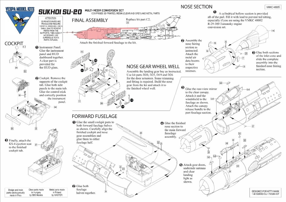 Перуанская Vespa Model Kits выпустила отлитый из полиуретановой смолы конверсионный набор для постройки модели Су-20 в масштабе 1/48 из модели Су-17М3/М4 от Kitty Hawk.