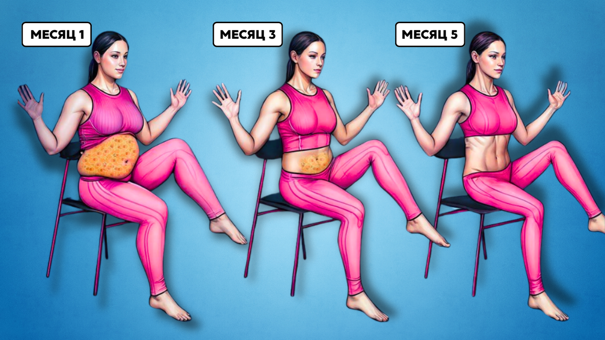 Эти два упражнения делаются прямо на стуле. Без нагрузки на колени. Без пота. И они правда работают — запускают мышцы живота, делают осанку лучше, а тело — стройнее. Первые изменения вы почувствуете уже через 7 дней. Даже если вы давно не занимались. Интересно? Тогда несколько слов теории и начнём. Здесь всё просто. Когда вы делаете эти упражнения, вы включаете в работу глубокие мышцы живота. Особенно важна поперечная мышца — она как корсет, который подтягивает живот изнутри. Это не про «качку пресса» сверху. Это про внутреннюю поддержку, которая формирует плоский живот и улучшает осанку. — Но как такое может работать сидя? — спросите вы. А вот как: