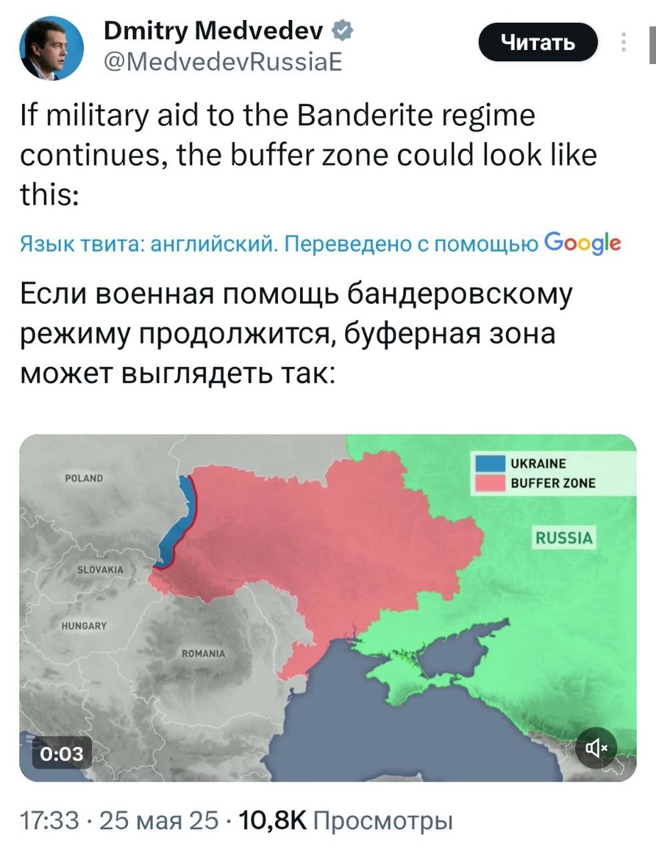 Дмитрий Медведев показал как будет выглядеть буферная зона, если Киев продолжат вооружать.