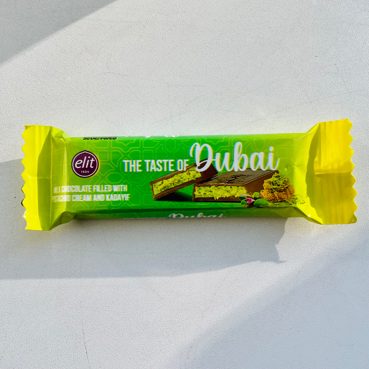 Сейчас очень популярен Дубайский шоколад с фисташками. Прямо какое-то массовое помешательство на нем. Очень много продуктов делают в этом стиле. Все блогеры смачно поедают его с экранов телефонов. На Пасху изготавливали дубайские куличи, в магазинах можно встретить разные сладости опять же в этом варианте. Да и сам шоколад тоже имеется в продаже. Причем не обязательно за ним ехать в этот самый Дубай. В наших магазинах тоже продается этот шоколад. Правда, конечно, не оригинал, но все равно можно купить и попробовать, чтобы хотя бы примерно иметь представление, почему он так популярен и востребован. Не так давно небольшие плитки я увидела в нашей Пятерочке. Свободно лежали на кассе эти маленькие шоколадки. Купила одну за 130 рублей. Выглядит довольно симпатично, хотя размер скромный. Однако и цена тоже невелика. На обороте упаковки написан состав и информация о производителе. Производство – Турция. Состав неидеальный, но фисташки в нем присутствуют. Сахар, сухое цельное молоко