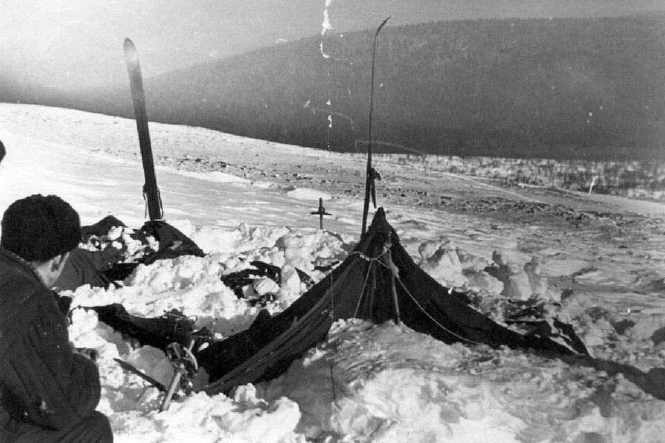 Когда группа не вышла на связь к назначенному сроку, 20 февраля начались поисковые работы. 26 февраля поисковая группа под руководством Михаила Шаравина обнаружила брошенную палатку. Состояние лагеря сразу вызвало множество вопросов у спасателей. Палатка была частично занесена снегом, вход аккуратно разрезан изнутри. Все вещи, включая теплую одежду и обувь, остались на своих местах. Вокруг четко просматривались следы 8-9 человек, уходящие вниз по склону в сторону леса.
