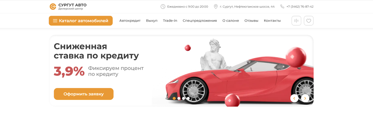Сургут Авто — это автосалон в Сургуте. Активно рекламируется, но пока его нет на картах. Возможно, это новое название АЦ на Нефтеюганском — дилера из нашего черного списка. Или, как минимум, это его сайт для сбора заявок. Согласно сайту автоцентра в Сургут Авто можно купить подержанный автомобиль. Причем по сниженной стоимости. Скидки доходят до 46%. При этом такое щедрое предложение ничем не объясняется: на сайте нет раздела с акциями, отсутствует публичная оферта. Верифицированных отчетов в открытом доступе нет: по клику на кнопку «Отчет автотеки» открывается документ, который может сделать абсолютно любой человек. Примечательно, что на картах по этому адресу находится Автоцентр на Нефтеюганском — автосалон из нашего черного списка. Сайт недобросовестного дилера не работает, поэтому мы думаем, что Сургут Авто — это его новое название. Автосалон на Нефтеюганском шоссе 44 в Сургуте, согласно информации в футере, принадлежит ООО «АВТОМАГ» (ИНН: 8602257671) — это то же юрлицо, что было у