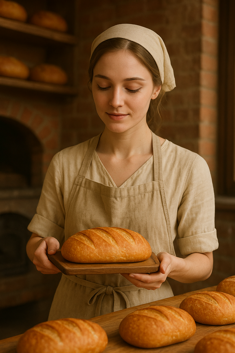 — Я бы хотела, чтобы она была как из книги. Знаете, такая — добрая, с запахом корицы и историей в каждом кадре. Из этого фото, — сказала женщина, кладя снимок на стол. — Кто она? — спросили мы, глядя на девушку с хлебом в руках и покоем в глазах. — Моя дочь. Она открыла свою пекарню. Маленькую, уютную. Всё делает сама: месит, печёт, угощает, улыбается. А я просто хочу, чтобы она увидела себя так, как её вижу я. 📸 На фото — девушка в простой одежде и с простыми мечтами. На фоне кирпичной печи и полок с ароматными буханками. Она держит хлеб как сокровище, с лёгкой улыбкой и закрытыми глазами, будто слушает, как он ещё теплится. 👩👧 — Она говорит, что хлеб — это не про еду. Это про заботу. Про то, чтобы кто-то знал: его ждут. 🎨 На картине: