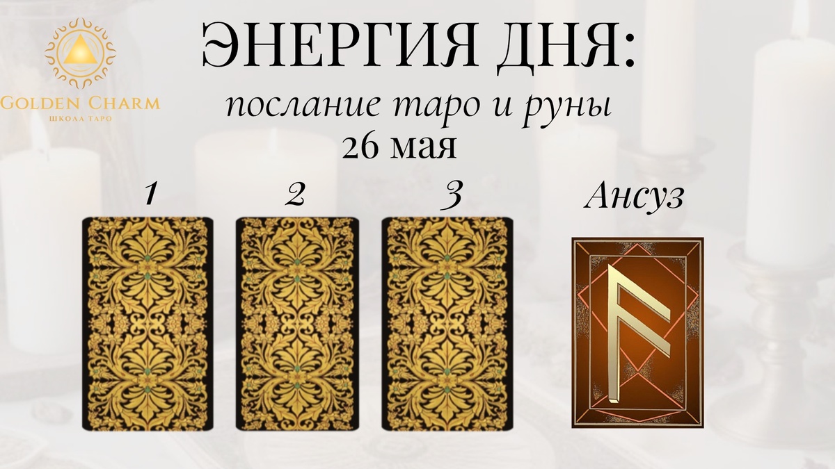 Заказать личный расклад тут✅ Прогноз на 26 мая : что тебя ждёт Приходи на обучение Таро ✅ Выбери карту — 1, 2 или 3 — и узнай, какой путь для тебя: 1. Девятка Кубков День обещает радость и удовлетворение от достигнутых целей. Это период наслаждения жизнью, гармонии и благодарности судьбе. Позволь себе насладиться моментом счастья и комфорта. 2. Мир Наступил поворотный этап твоего пути. Готовься завершить старые циклы и вступить в новую фазу жизни. Будь открыт переменам и новым возможностям. Мир открывает перед тобой дверь к полной реализации твоих мечтаний. 3. Дьявол Возможно, сегодня проявятся скрытые ограничения или привычки, удерживающие тебя от роста. Время осознать зависимости и принять решение освободиться от всего, что мешает двигаться вперёд. Освобождение принесёт свободу и лёгкость. Руна дня — Ансуз Энергообмен между миром духов и нашим сознанием. День идеален для вдохновения, общения с высшими силами и мудрыми наставниками. Важно прислушиваться к знака