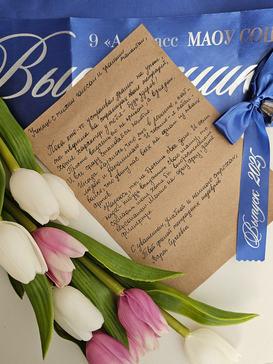 Так получилось,что Анин класс в этом году был под руководством совсем молодого учителя. Это его первый опыт классного руководства. Парню 23 лет,учителю биологии достались взрослые девятиклассники😁🤪 Он старался изо всех сил и он справился! В честь последнего звонка,он написал от себя каждому учинеку письмо! Это очень неожиданно и трогательно!! 🥹