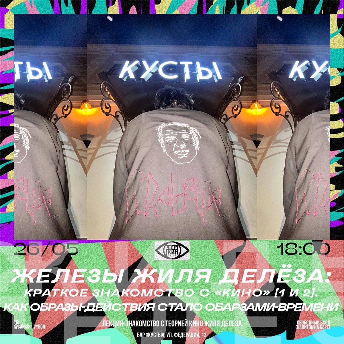 ЛЕКЦИЯ О ЖИЛЕ ДЕЛЁЗЕ И «КИНО» 🗓️ 26 мая 18:00 📍Бар «Кусты» (Федерации, 13) Жиль Делёз — французский философ, постструктуралист. Среди всей тусовки поструктуралистов (Барт, Фуко, etc.) — и вообще философии — Делёз стал единственным философом, написавшим полный, объёмный и тотальный (во всех отношениях) труд по кинематографу — сейчас он известен как «Кино». Жиль дружил с главредом Cahiers Du Cinema, читал лекции по теории кино — именно они стали будущей основой для двух книг — «Кино-1» [1983] и «Кино-2»[1985]. На большинстве языков они переведены и изданы одной книжкой — «Кино». Жиль занимался не кинокритикой — меньше всего в книге можно найти анализ фильмов, в лучшем случае — отдельных эпизодов авторской классики. Делёз рассматривал кино почти как живое коллективное [состоящее из фильмов] существо, которое обладает сознанием и имеет своё мышление. На лекции Саша Филиппов осветит его биографию и основные философские труды, расскажет об опыте прочтения «Кино» и о ключевх тезисах Жи