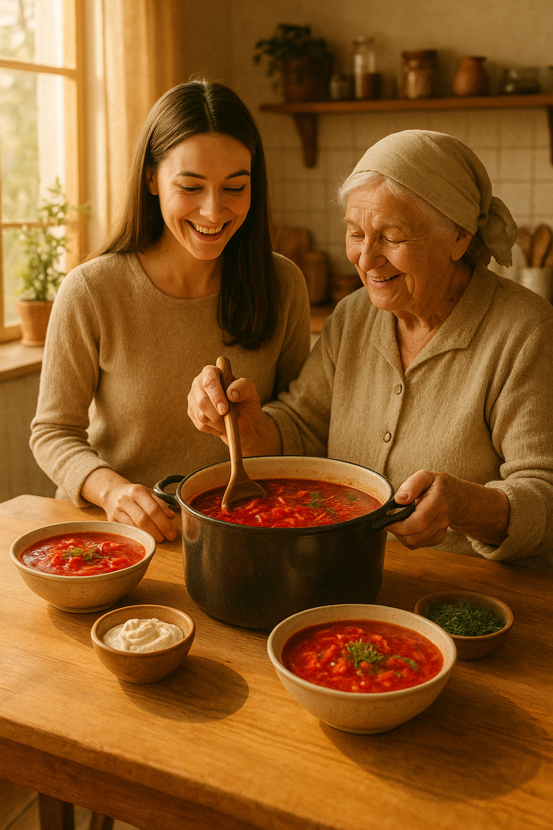 Готовить для свекрови борщ — это всегда отдельный вид марафона на выносливость. Даже если у вас мирные отношения, суп из свёклы становится лакмусовой бумажкой: примет ли она новую хозяйку в доме, оценит ли старания и одобрит ли ваши кулинарные замашки? У меня тоже была своя непростая история "борщевых баталий". --- Первая ложка — первый суд Честно? Я была уверена, что знаю все секреты и готовлю отлично. До тех пор, пока впервые не пригласила свекровь к столу. Суп по дедушкиному рецепту вызвал у неё только вежливый кивок и классическую фразу: “Хороший, но наш — немного по-другому”. Каждая новая попытка превращалась в мини-допрос: почему без фасоли, где “тот самый” привкус, зачем так много специй? Я расстраивалась, спорила и даже подумывала не варить больше вовсе. Но однажды решила: а почему бы просто не спросить у неё, как готовят в их семье? Почему важно не рецепт, а участие Вместо традиционных споров я пригласила свекровь готовить вместе. Оказалось, что в её жизни борщ — не просто бл