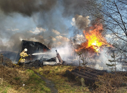 На место происшествия выехали пожарные: шесть человек личного состава ПЧ-61 Беломорска, две АЦ (8 км до места следования). В пути поступил второй вызов о возгорании сухой травы в Беломорске. Отряд разделился на две части. Одна автоцистерна вернулась в Беломорск. По прибытии на место в поселке Водников горели уже четыре хозяйственные постройки, возникла угроза двум жилым домам и другим строениям.