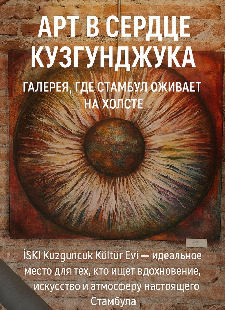 Кузгунджук-это уютный район Стамбула на азиатской стороне города, где сохранились старинные деревянные дома, уличные кафе и особая атмосфера, словно из фильма. Среди этих улочек скрыта небольшая, но очень атмосферная арт-галерея İSKİ Kuzguncuk Kültür Evi. Здесь проходят выставки живописи, антиквариата и современного турецкого искусства. Пространство оформлено в стиле лофт — кирпичные стены, мягкий свет и картины, которые цепляют с первого взгляда. Галерея сотрудничает с Feminen Sanat Atölyesi — арт-мастерской, которая продвигает творчество турецких художниц. Выставки здесь — это микс абстракции, пейзажей и символизма. Есть картины с Босфором, старинными мечетями, уличными сценками Стамбула. А есть — настоящие цветовые вихри, которые передают эмоции без слов.И необычная картина-глаз, в которой будто отражается весь город. Почему стоит зайти: бесплатный вход, можно просто смотреть или купить понравившуюся работу, атмосферное место — красиво, тихо и вдохновляюще, отличная точка для фото и