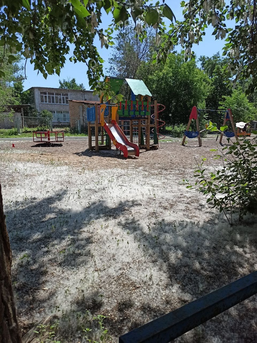Детская площадка в 23 мкр-не на Гагарина, 42 уже много лет в таком состоянии: всё сломано, нет ни одной целой урны, всегда кучи мусора