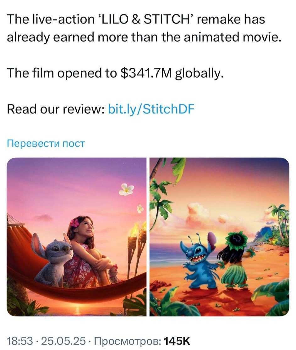 Ремейк «Лило и Стич» был признан лучшей работой Disney этого года, собрав 340 миллионов долларов всего за две недели