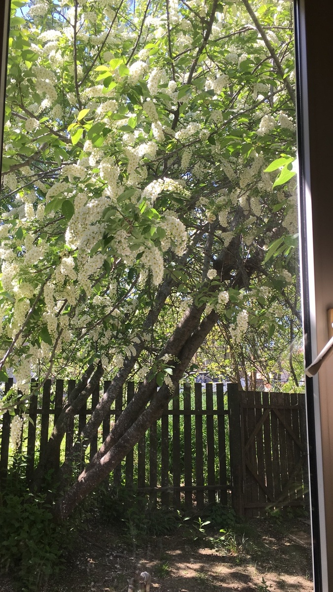 Такая вот картина маслом красовалась у меня за кухонным окном добрую половину мая. Это старая семиствольная черёмуха, которую садили когда-то мои родители-сибиряки. Тогда она здесь, в кубанской глубинке, была одна на всё село. Да и сейчас черёмуху тут почти не садят. В этом году май у нас был холодный, и черёмуха наша благоухала на всю улицу. А я каждое утро любовалась этой немыслимой красотой, попивая кофе, с благодарностью вспоминая маму, так любившую это дерево... В заголовке поста начальные строчки старой доброй песни, которую пела родня за праздничным столом - давно, когда мы все жили в одном месте и все были живы-здоровы. Эту песню и сейчас поют с эстрады. Душевная, мелодия красивая... А у меня каждый раз ком в горле. "Под окном черёмуха колышется, осыпая лепестки свои, За рекой знакомый голос слышится да поют всю ночку соловьи. Фотография сделана прямо из кухонного окна, извините, если чё. Последний сильный дождь сбил с черёмухи остатки пышного убранства. И у нас третий день нас