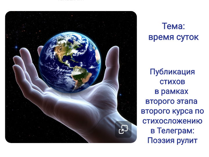 Публикация в рамках второго курса по стихосложению в Телеграм канале - Поэзия рулит https://t.me/nazeniya1