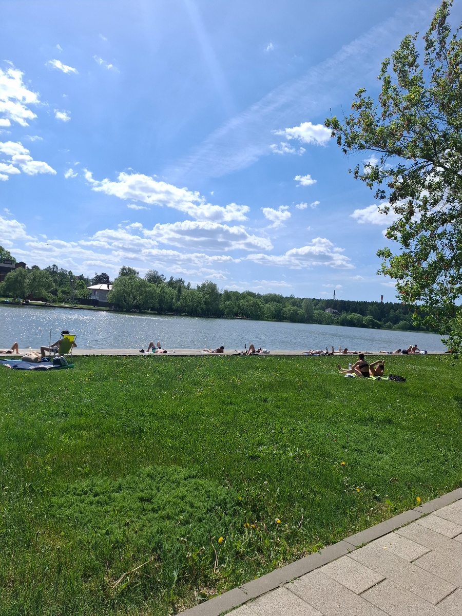 Сегодня Лера встала поздно, в 9, поэтому было понятно, что раньше 15 она не уснёт, а значит можно смело ехать в Мещерский, как я придумала вчера ночью. Тут я и подруге написала, подумала вдруг у неё планов нет. Так и оказалось, поэтому договорились в 10 с копейками выдвинуться. Приехали на место в 11, на электричке-то проехать всего 10 минут, но надо до станции и там от станции пешком дойти. Народу было просто полно, хотя было утро и пруд ещё не прогрелся толком (хотя некоторые уже и купались). Лера попросила мороженое, и я очень даже впечатлилась - они берут обычное мороженое Чистая линия, макают его в расплавленный шоколад (три вида), и стоит это 300 рублей штука. После этого мы пошли на площадку. Сначала на одну, и я не вспомнила её, возможно, год назад мы и не заходили на неё. Немного там побыли, я еле уговорила Леру пойти дальше, а то подруга совсем заскучала. Это ещё оказалась "Музыкальная площадка ", Лере понравилось)) Пошли дальше, на площадку, где мы были год назад