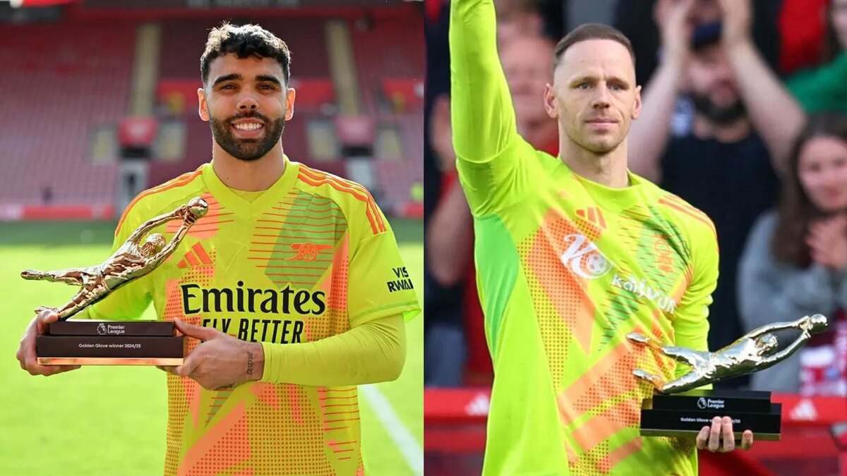 Давид Райя из "Арсенала" и Матц Сельс из "Ноттингем Форест" разделили "Золотую перчатку" в этом сезоне Премьер-Лиги — по 13 "клин-шитов" 🧤