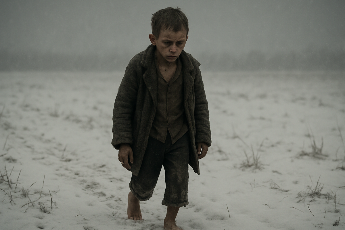 Он шёл по полю босиком. Зимой. Снег хрустел под ногами, как сахар, которого он никогда не пробовал. Мальчик лет девяти. В кармане — ничего. Во рту — ничего. В голове — пустота, в которой когда-то жила мать. А теперь — только голод. Он не знал слов “Голодомор”, “раскулачивание”, “плановая политика”. Он знал другое: трава не спасает, кора не насыщает, и те, кто ест людей, умирают с глазами, полными стыда.