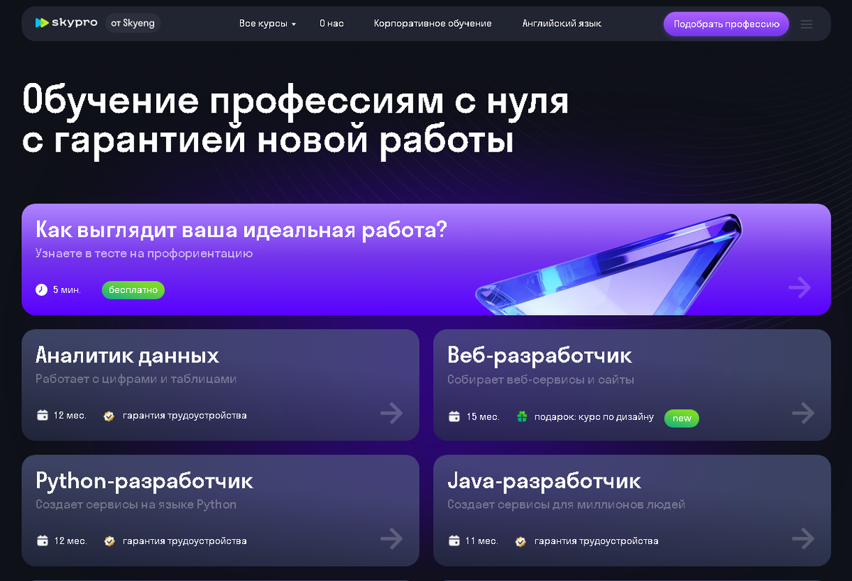 - Подбор курса в соответствии с личными интересами и целью обучения: Подберите идеальную программу для себя, принимая во внимание свои достижения и цели.