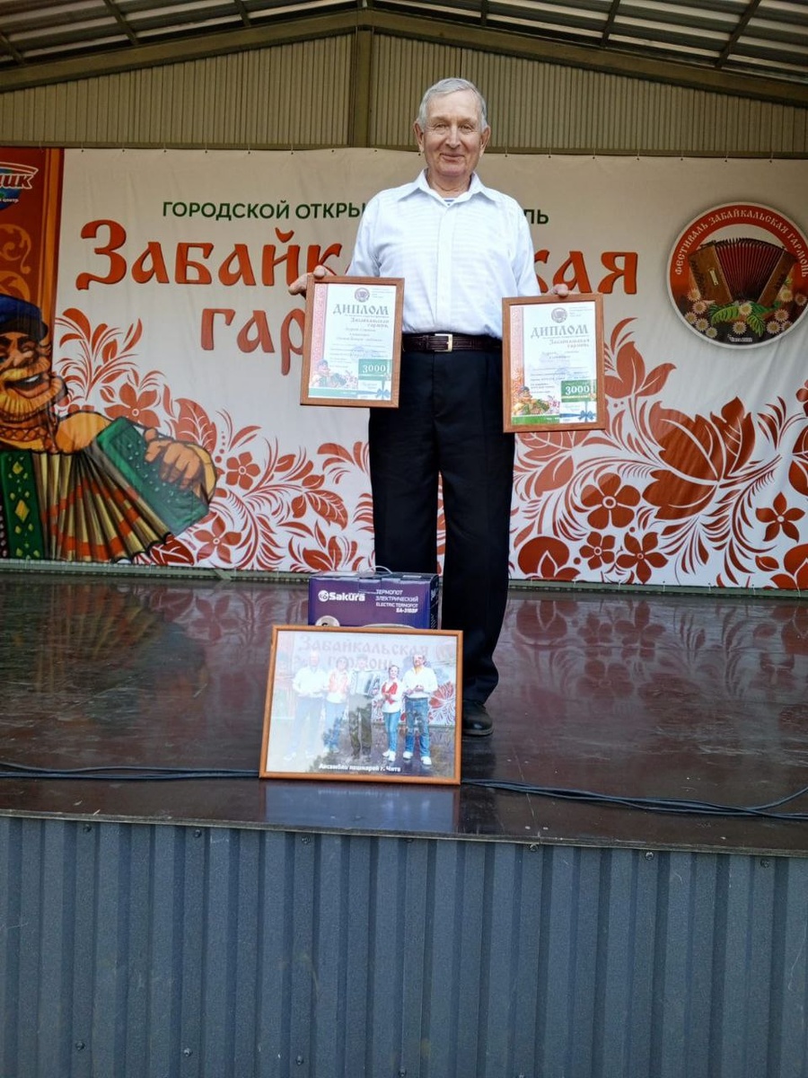 🪗 25 мая 2025 г. в День города на спортивной базе "Берёзка" прошел 4-ый городской фестиваль-конкурс "Забайкальская гармонь". В фестивале принимали участие и артисты Академического народного хора "Россияне". Участники хора очень талантливы. Помимо академического пения играют на различных инструментах (гитаре, ложках,тбаяне, фортепиано и др.), снимаются в короткометражных художественных фильмах, декламируют стихи, побеждают в спортивных состязаниях, вяжут, шьют и танцуют. Вот и в этот раз, лауреатом 1-ой степени сразу в двух номинациях: "Лучший баянист - любитель" и "Лучший аккомпаниатор" (ансамбля ложкарей) стал солист хора "Россияне"- Тарасов Виктор Александрович. 💐Поздравляем с заслуженной победой. Гордимся!