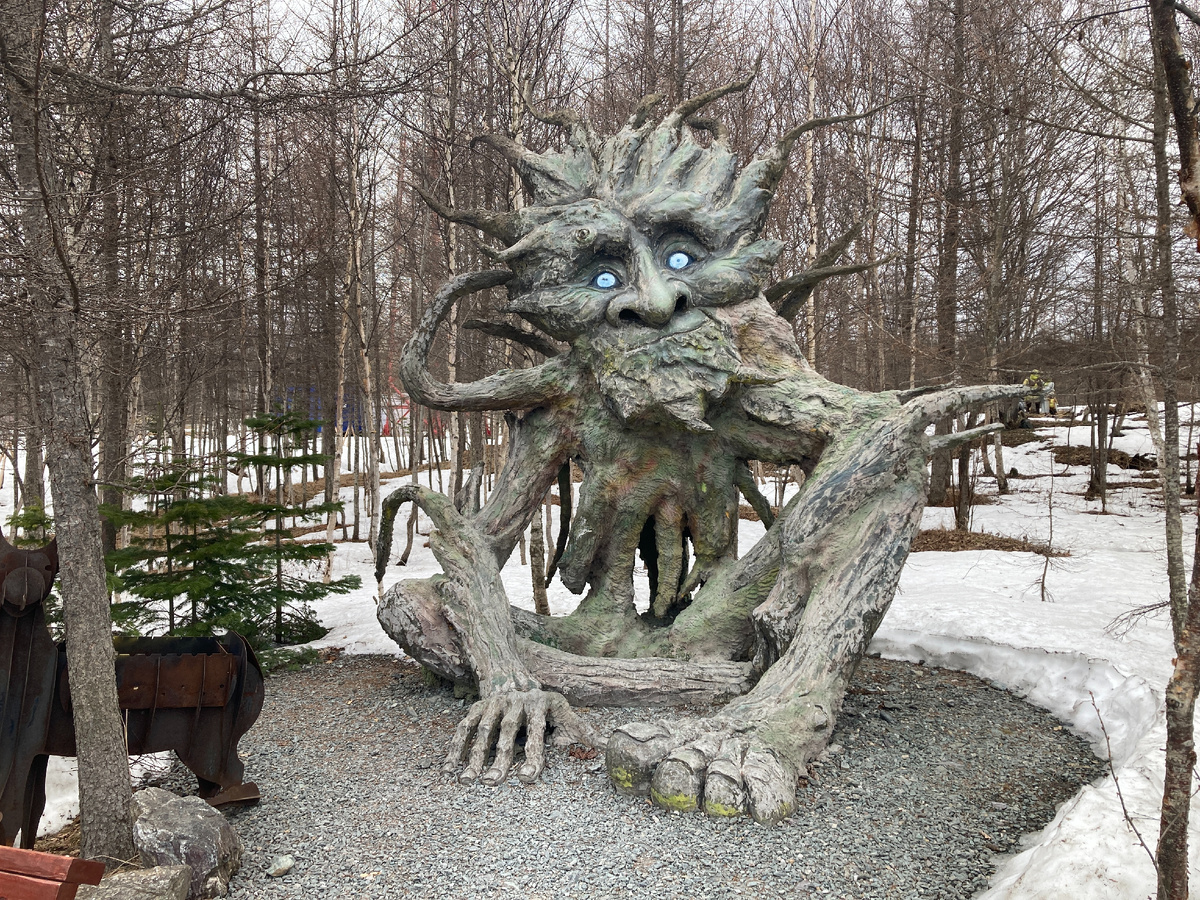 Минутах в 20 езды от Южно-Сахалинска (в сторону Корсакова) есть оленья ферма «Rose Agro». Как-то в воскресенье нам было нечем заняться, и мы туда скатались. Земляки говорили, что там интересно. Ворота открываются примерно за полчаса до начала экскурсий, которые проводятся трижды в день - в апреле, соответственно, в 12:00, 14:00 и 16:00. Без них попасть на территорию нельзя. Билет на взрослого стоит 1000 рублей, по желанию можно купить корма за 100-300 рублей. Без кормов там делать нечего, так что лучше раскошелиться. Карты, к счастью, принимают. Экскурсией, конечно, это нельзя назвать. Тухлый дядька в масочке доводит туристов до пункта продажи корма, по пути ничего не рассказывает, а потом распахиваются ворота, и на гостей выбегают вечно голодные олени. Одного пакетика с кормом явно недостаточно, чтобы порадовать всех рогатых. К "пустым" посетителям олешки быстро теряют интерес. Территория будет интересна, скорее, детям, чем взрослым. Тут есть ряд арт-объектов из дерева по мотивам му