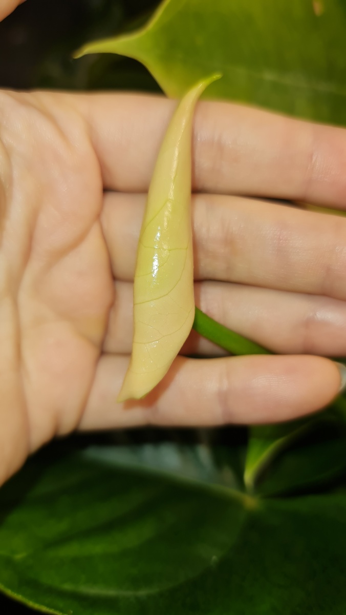 Антуриум Нунция редкий срезочный голандский сорт. С крупными прицветниками и довольно внушительными размерами листовой пластины. Высота растения так же не отличается скромностью. А теперь по порядку с самого интересного-цветение. Многие антуриумы меняют оттенок покрывала в течение цветения. Но есть такие, которые меняют оттенки радикально. Нунция один из таких сортов. Мне было очень интересно наблюдать за этим процессом, с нетерпением ждала, чем прицветник удивит завтра. Поэтому решила собрать в этой статье все стадии цветения разных прицветников. От первого робкого соцветия до сильного взрослого. Не только оттенок меняется на протяжении цветения одного соцветия, но и форма соцветий приобретает более правильную, когда куст становится взрослым. В отличии от неуверенных мододых форм, взрослые прицветники обретают четкие контуры соответсвующие сорту. В первом цветении бутон был скромный. Сначала вышел карамельного цвета. Потом добавил розовый. Прицветник разворачивал с большим количеством