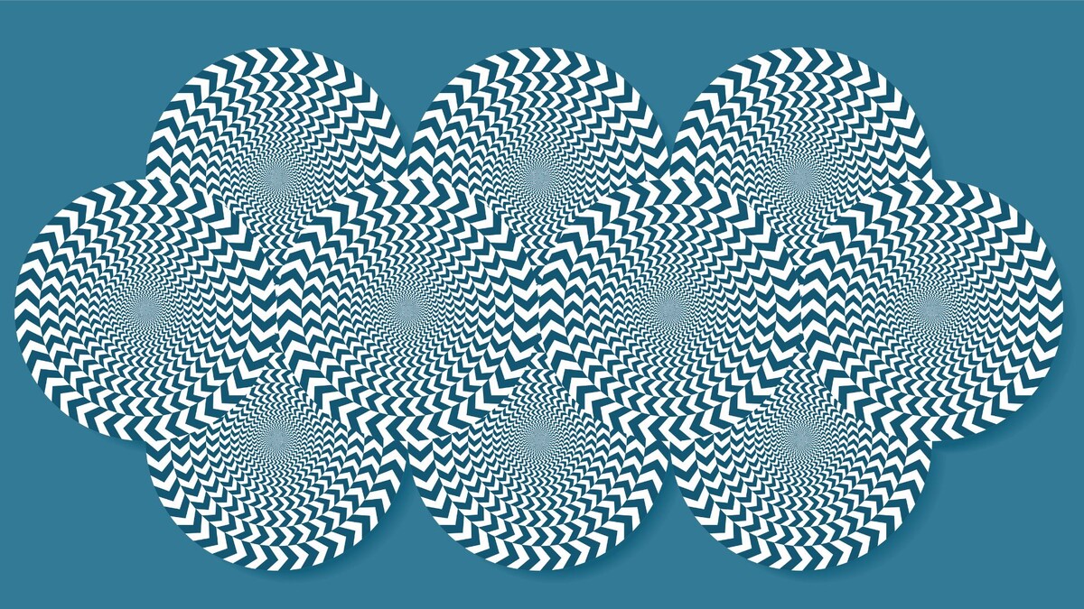 Иллюзия движущихся змей — это обман зрения, когда мы видим движение там, где его нет. На самом деле все объекты на картинке статичны, но при этом кажется, что круглые фигуры на изображении вращаются. Если вы сфокусируете взгляд на одной точке, эффект исчезнет.