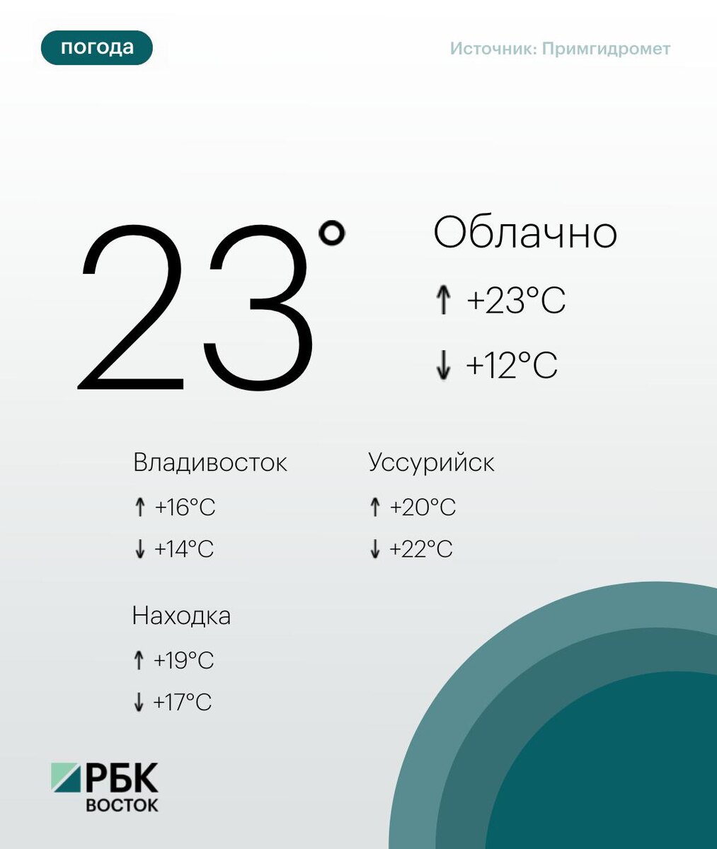Сегодня погоду в Приморье определяют фронтальные разделы. Местами кратковременный дождь, гроза. Утром в отдельных районах туман. Ветер юго-западный умеренный. Температура воздуха днем +12...+23°C 🌧 Во Владивостоке переменная облачность, днем без существенных осадков. Утром местами туман. Ветер южный умеренный, в конце дня до сильного. Температура воздуха +14...+16°C, в пригороде до +19°C. 🍱Подписывайтесь на РБК Восток