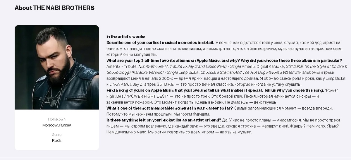 Короткое интервью для Apple Music