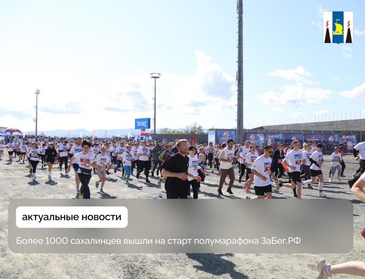 Более 1000 сахалинцев вышли на старт полумарафона ЗаБег.РФ Сахалинская область присоединилась ко Всероссийскому полумарафону ЗаБег.РФ. Это яркое и масштабное событие с синхронным стартом более 150 тысяч участников из 85 городов России, 11 часовых поясов и с единым стартом для всей страны. В этом году в Южно-Сахалинске забег провели шестой раз. Сахалинцы и гости островного региона испытали свои силы на дистанциях 500 метров, 1, 5, 10 и 21,1 км на трассе лыжно-биатлонного комплекса «Триумф». Всего в спортивном празднике приняли участие более 1200 человек из разных городов области. Вместе с ними стартовали и руководство областного минспорта. - Прекрасная погода, новая локация - все благоволит тому, чтобы забег прошел на все сто! Организаторы сделали невозможное и за 4 дня подготовили прекрасную трассу. Мы - большая спортивная семья, поэтому поздравляю всех с открытием ЗаБега.РФ на Сахалине! Желаю всем сегодня показать свой лучший результат на выбранной дистанции и, главное, получить уд
