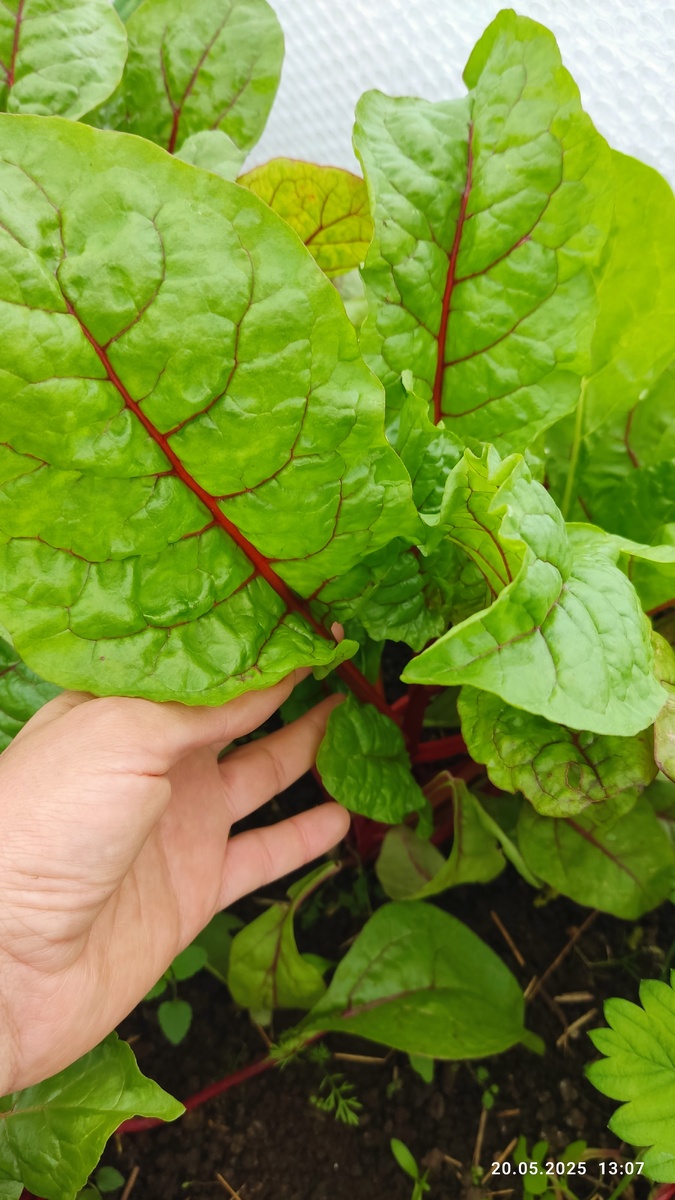 Мангольд, он же листовая свёкла, во многих странах считается деликатесом. У меня всё как то руки не доходили до его выращивания. То места нет, то семян не найти. А попробовать было интересно. В прошлом году заранее запаслась семенами и этой весной, как только погода повернула к весне посеяла его в теплице. Взошёл он самым последним из всех моих посевов. Он как нормальная свёкла в этом плане ждун - сидит и ждёт нормальной погоды. Даже когда взошёл, рос неохотно, с осторожностью. Погода то прыгала - два шага в тепло, полтора назад в мороз. Вот он и рос так же. А потом резко включили лето! На столько резко, что у меня второй раз в жизни солнечный ожог (первый был в 6 лет на морях) и вот тут он как начал расти! Южанин одним словом. Вот такой вот вырос Видела картинки как он у себя растёт, в своих климатических зонах в смысле. Там он прям куст, похлеще нашего ревеня! Может и у нас так вырастает, не знаю. Пришло время дегустации. Конечно начали с салата. Ох... Ну трава травой, честное слов