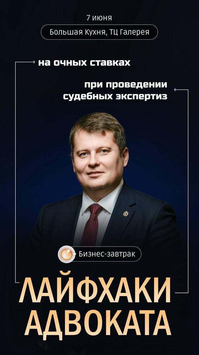 Приглашаю на адвокатский бизнес-завтрак со мной! В субботу 7 июня! В продолжение нашей конференции «ПРОФЕССИЯ АДВОКАТ» я расскажу то, что мало кто рассказывает. И это моя НОВАЯ тема! Если вы слушали мои учебные курсы, то знаете, что я рассказываю не скучно, а только практику и очень простым языком! На завтраке я расскажу: ✔️ Как быть полезным адвокатом во время очной ставки, а не быть «статистом». ✔️ Поделюсь крутыми лайфхаками: - что делать адвокату во время ознакомления с постановлением о назначении судебной экспертизы и с заключением эксперта; - как «выбивать» экспертизы из дела; - ошибки адвокатов, когда они просят признать экспертизы недопустимым доказательством; - обсудим работает ли сейчас «схема» с рецензией на экспертизу! Сразу скажу - НЕТ! Если вы до сих пор «по старинке» при помощи рецензий пытаетесь выбить из дела экспертизы, то вы должны знать - что толку от этого никакого! Надо действовать по другой «схеме»! О которой и расскажу! Количество мест очень мало!