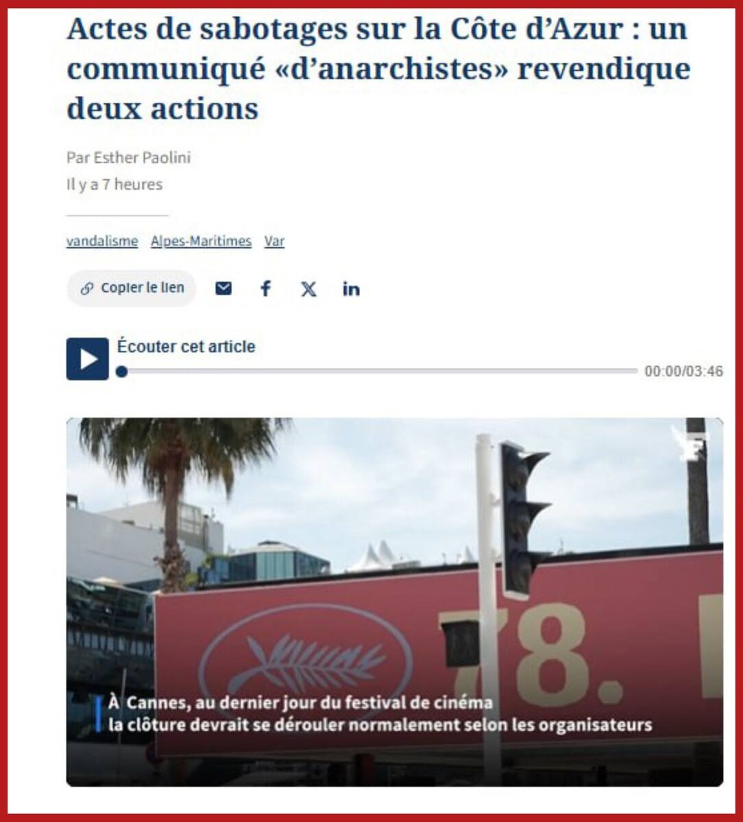 Point: Одной из целей атак на французскую энергетическую инфраструктуру было нарушить работу Каннского фестиваля, который анархисты считают метафорой нездорового общества.