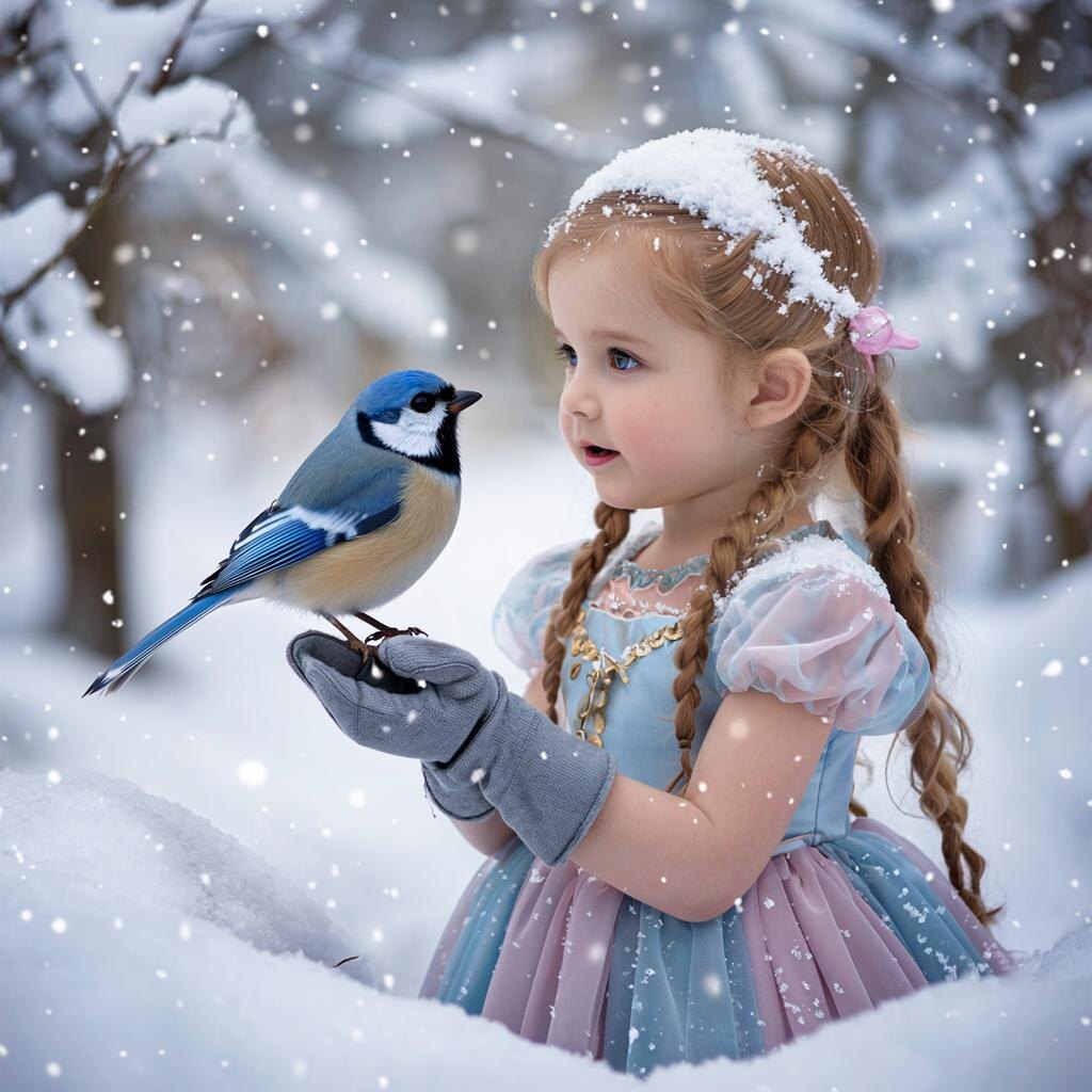 В морозном зимнем лесу жила юркая синичка по имени Синяя Снежинка. Зиму она переносила хуже всех птиц, замерзая и испытывая нехватку корма. Однажды, прилетев к кормушке, поставленной человеком, она увидела небольшую девочку, рассыпавшую хлебные крошки. Девочка смотрела на птичек с удовольствием, зовя их кушать. Синяя Снежинка не могла поверить своему счастью: человек проявил сострадание и заботу. Скоро птица привыкла получать пищу от девочки и пригласила других птиц присоединиться. Люди узнали о подвигах Синевой Снежинки и стали устанавливать кормушки повсеместно, обеспечивая питание многим видам птиц. С тех пор Синяя Снежинка стала символом взаимопомощи и доброты, напоминая людям о необходимости заботиться о братьях меньших. 🐦✨