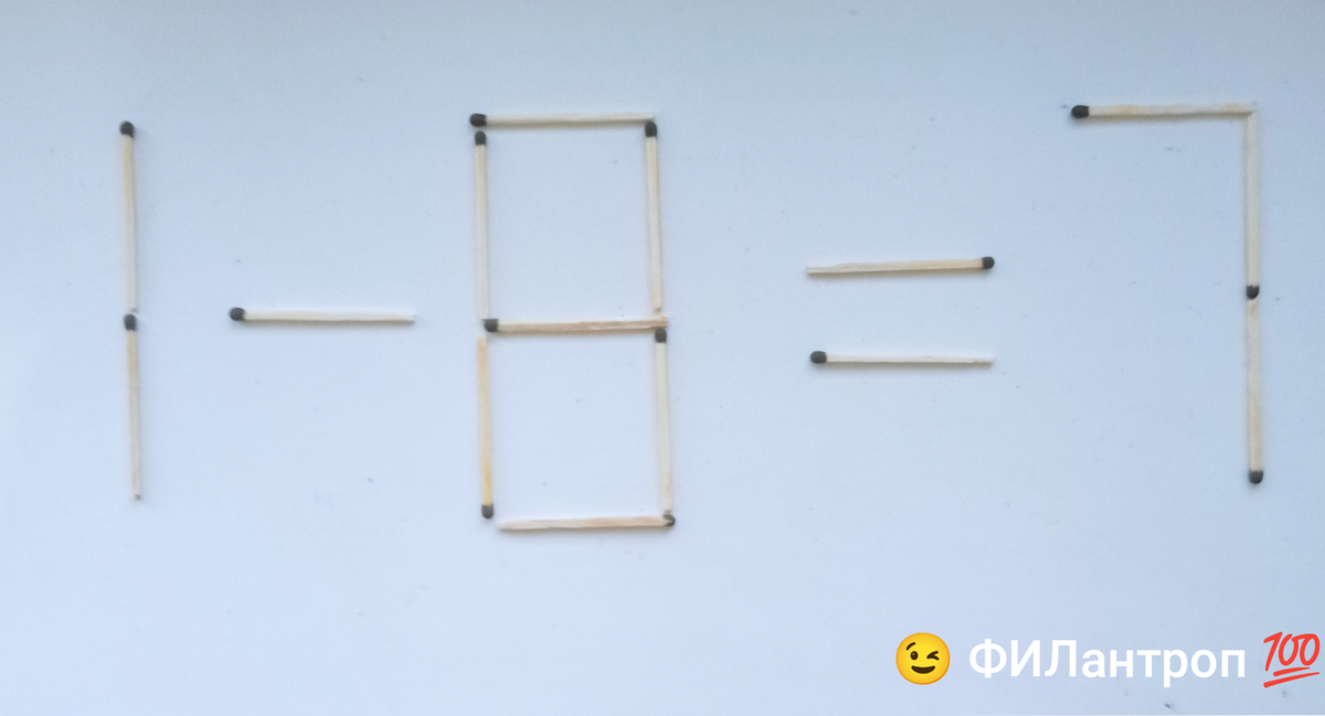 Здравствуйте, уважаемые подписчики и гости канала! Хоть прогресс и движется семимильными шагами, старые- добрые головоломки не теряют свою актуальность по сей день! Попробуем решить задачку?! На подоконнике разложены спички (мне скучно было😄), порядок которых представляет собой неверное равенство. Нужно переложить одну из них так, чтобы пример стал верным. Я нашёл 2 варианта (если Вы найдëте больше, можете указать в комментариях 🤔). Мои решения в конце статьи. Получилось? Сложно было? Буду признателен, за оставленный комментарий! 🤗 ⚡Благодарю за внимание!!!⚡ 🔥Не забывайте, оценить материал и подписаться на канал))🔥 Ответ № 1 Ответ № 2