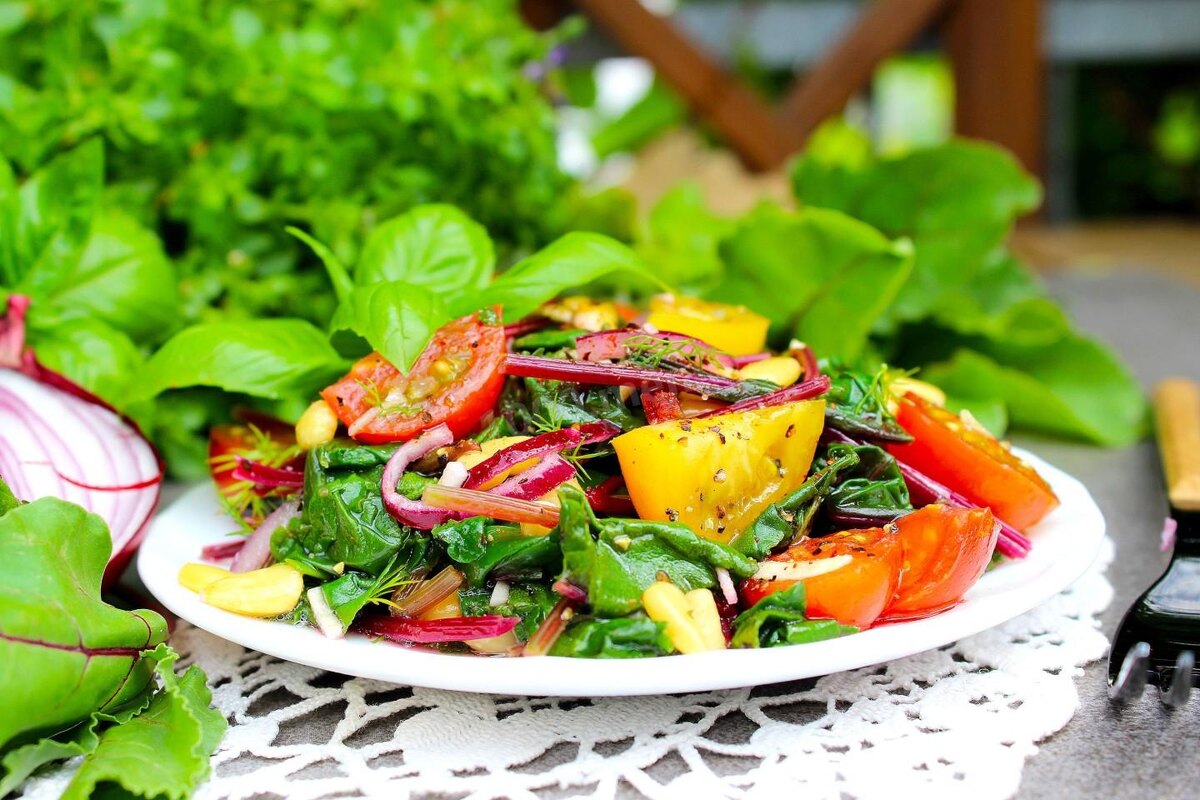 Салат из свекольной ботвы — это вкусное и полезное блюдо, которое может стать отличным дополнением к вашему столу. Свекольная ботва богата витаминами и минералами, такими как витамин С, железо, кальций и другие. Она имеет нежный вкус и может использоваться в различных салатах. Ингредиенты: Приготовление: Свекольную ботву промыть и нарезать. Огурец и помидор нарезать кубиками. Зелёный лук, укроп и петрушку мелко нарезать. Все ингредиенты смешать в миске. Добавить оливковое масло, лимонный сок, соль и перец. Тщательно перемешать. Приятного аппетита!
