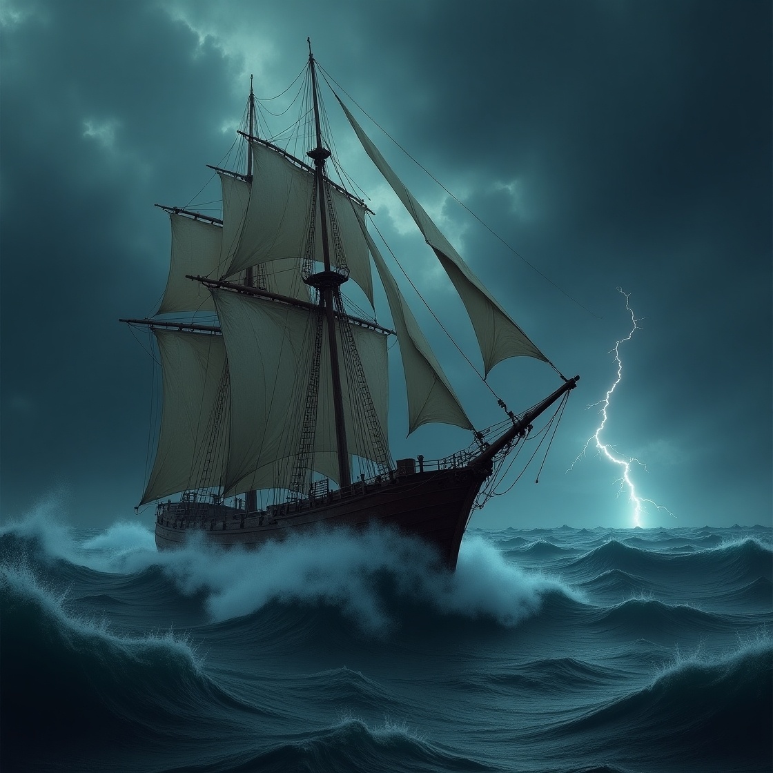 Штормовой вечер. Тяжелые свинцовые волны бьются о борт «Морского призрака» - старого, видавшего виды судна, чьи паруса потерты ветрами сотен бурь. В капитанской каюте, освещенной дрожащим светом масляной лампы, старый моряк с руками, покрытыми татуировками штормовых маршрутов, разламывает сургучную печать на пожелтевшем конверте. Бумага шуршит, как змея, когда он извлекает единственный лист пергамента. Всего три слова, написанные дрожащей рукой: «Они идут за нами».
