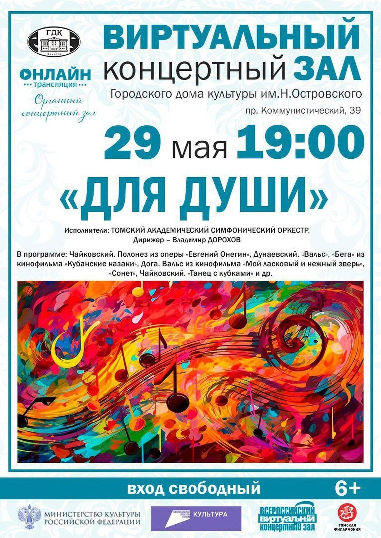 29 мая в 19:00 в виртуальном концертном зале ГДК им.Н.Островского состоится трансляция концерта «Для души» из Органного концертного зала Томской филармонии. В этом концерте вы услышите вальсы, танго и романсы — музыку, которая наполняет душу ностальгией и мечтательностью. #СеверскАфиша