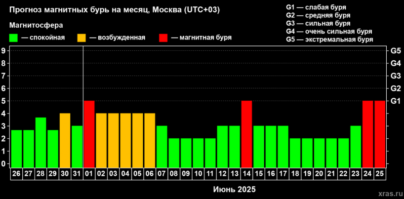 Специалисты Лаборатории солнечной астрономии ИКИ и ИСЗФ представили прогноз магнитных бурь на июнь 2025 года. Так, буря уровня G1 (слабая буря) ожидается в первый день лета. С 2 по 6 июня магнитосфера будет возбуждённой. Следующая магнитная буря уровня G1 накроет Омскую область 14 июня. Всплески геомагнитной активности также прогнозируются 24 и 25 числа. Врачи напоминают, что в такие периоды у метеозависимых людей могут наблюдаться головные боли, головокружения, нарушение сна и скачки артериального давления. Специалисты советуют заранее позаботиться о самочувствии: соблюдать режим дня, отказаться от чрезмерных физических нагрузок, пить больше воды и избегать стрессовых ситуаций.