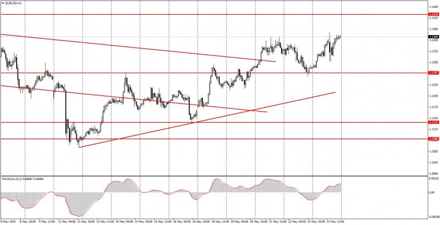 Макроэкономических публикаций на понедельник не запланировано ни одного. Таким образом, влияния макроэкономический фон не окажет на движения обеих валютных пар. Но макроэкономика сейчас в любом случае значит для трейдеров очень немного. На прошлой неделе доллар регулярно падал, когда никаких причин для этого не было, на исключительно формальных причинах и на новых решениях Трампа о санкциях.