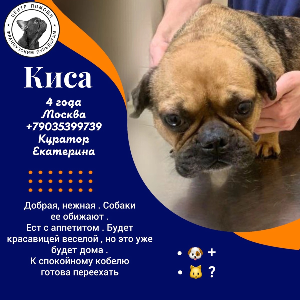 Девочки красавицы ищут семьи🏡🎀 #Киса@frenchbull_help https://vk.com/topic-144285450_54131304 #Риса@frenchbull_help https://vk.com/topic-144285450_54131305 #Поля@frenchbull_help https://vk.com/topic-144285450_54179271 Малышки находятся в клинике в ближнем Подмосковье. Обследованы, стерилизованы. У Кисы и Рисы пролечены инфекции. Молодые, красивые, миниатюрные, добрые, ласковые бульдожки. Ладят с сородичами. К выгулу надо приучать. Также рассмотрим домашние передержки до поиска семьи. ⬇ Заполняйте анкету vk.com/app5619682_-144285450 И связывайтесь САМОСТОЯТЕЛЬНО с куратором ➡️ ☎️ Екатерина +7 903 539-97-39 WhatsApp