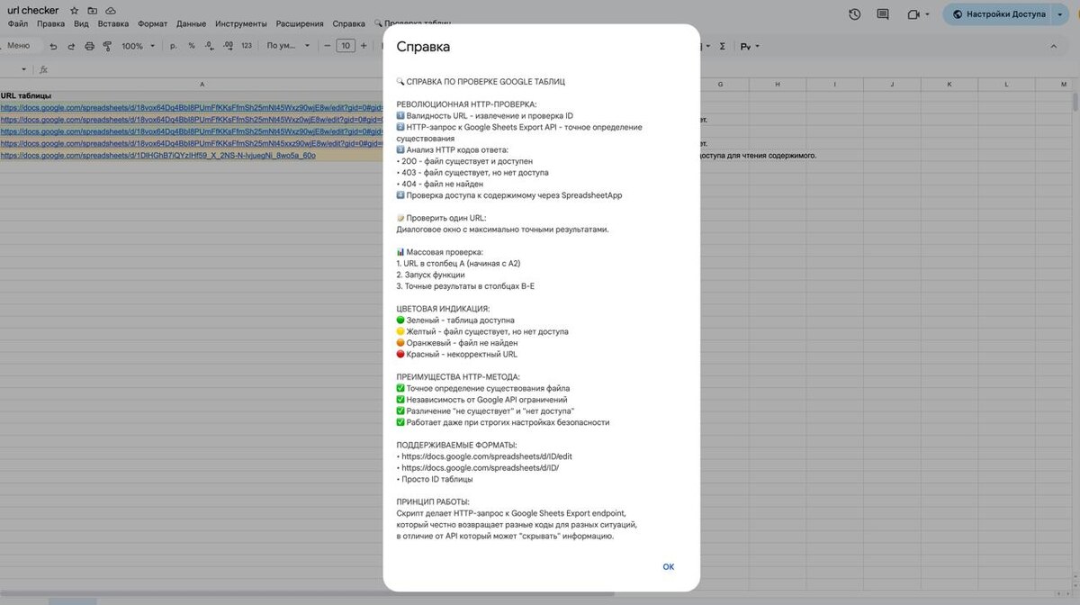 Π°Π»ΠΈ! π― ΠΠ°Π΄Π°ΡΠ°, ΠΊΠΎΡΠΎΡΡΡ Π½ΡΠΆΠ½ΠΎ Π±ΡΠ»ΠΎ ΡΠ΅ΡΠΈΡΡ: Π’ΠΎΡΠ½ΠΎ ΠΈ Π΄ΠΎΡΡΠΎΠ²Π΅ΡΠ½ΠΎ ΠΎΠΏΡΠ΅Π΄Π΅Π»ΠΈΡΡ ΡΡΡΠ΅ΡΡΠ²ΡΠ΅Ρ Π»ΠΈ Google Π’Π°Π±Π»ΠΈΡΠ° ΠΏΠΎ URL, Π΄Π°ΠΆΠ΅ Π΅ΡΠ»ΠΈ ΠΊ Π½Π΅ΠΉ Π½Π΅Ρ Π΄ΠΎΡΡΡΠΏΠ°. ΠΠ²ΡΡΠΈΡ ΠΏΡΠΎΡΡΠΎ? ΠΠ° Π΄Π΅Π»Π΅ ΠΎΠΊΠ°Π·Π°Π»ΠΎΡΡ Π³ΠΎΡΠ°Π·Π΄ΠΎ ΡΠ»ΠΎΠΆΠ½Π΅Π΅! π€ ΠΡΠΎΠ±Π»Π΅ΠΌΡ, Ρ ΠΊΠΎΡΠΎΡΡΠΌΠΈ ΠΌΡ ΡΡΠΎΠ»ΠΊΠ½ΡΠ»ΠΈΡΡ: 1οΈβ£ Google API "Π·Π°ΡΠΈΡΠ°Π΅Ρ" ΠΈΠ½ΡΠΎΡΠΌΠ°ΡΠΈΡ Π SpreadsheetApp.openById(), ΠΈ DriveApp.getFileById() ΠΌΠΎΠ³ΡΡ Π²ΠΎΠ·Π²ΡΠ°ΡΠ°ΡΡ ΠΎΡΠΈΠ±ΠΊΡ "not found" Π΄Π°ΠΆΠ΅ Π΄Π»Ρ ΡΡΡΠ΅ΡΡΠ²ΡΡΡΠΈΡ