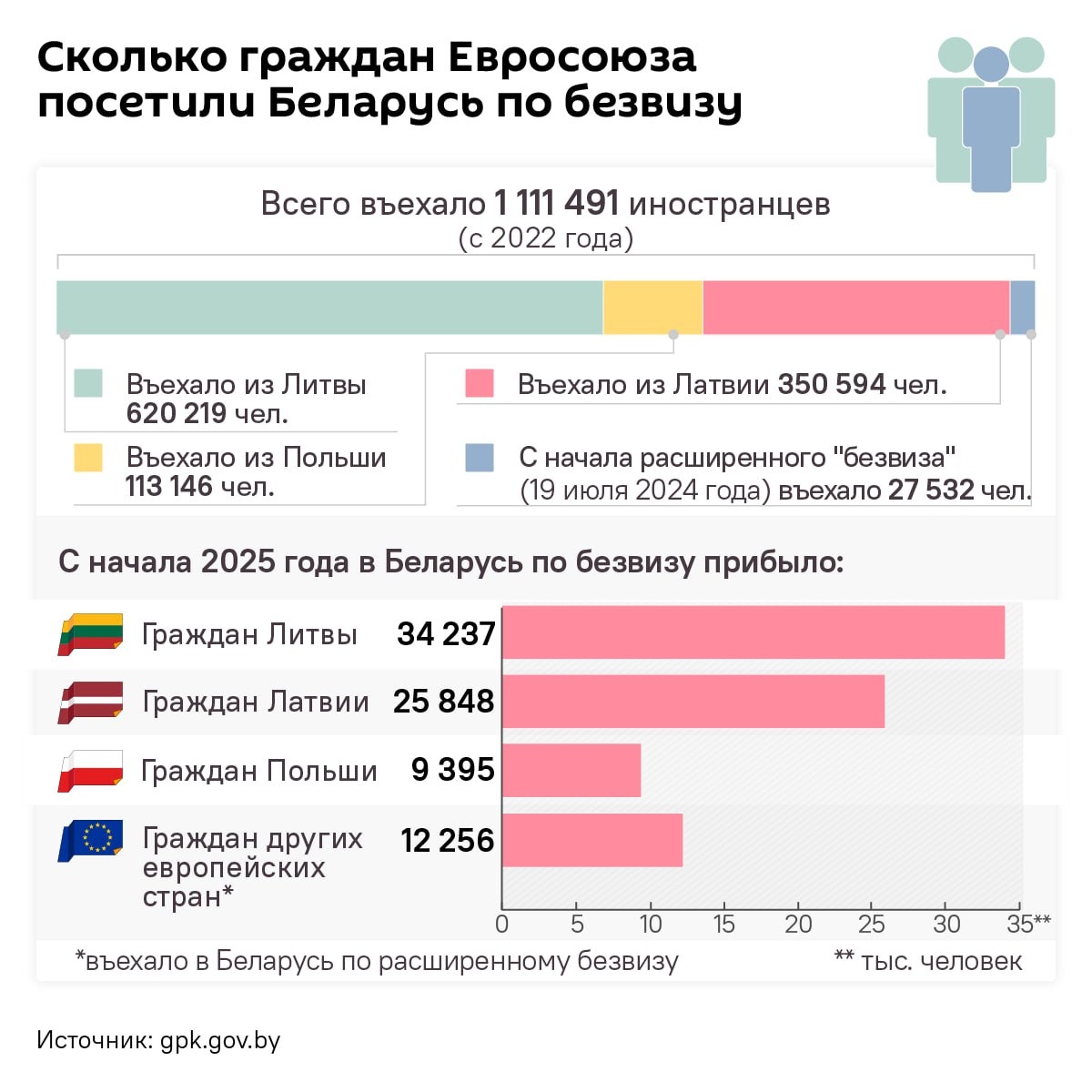 Почти 82 тысячи граждан ЕС побывали в Беларуси по безвизу с начала 2025 года