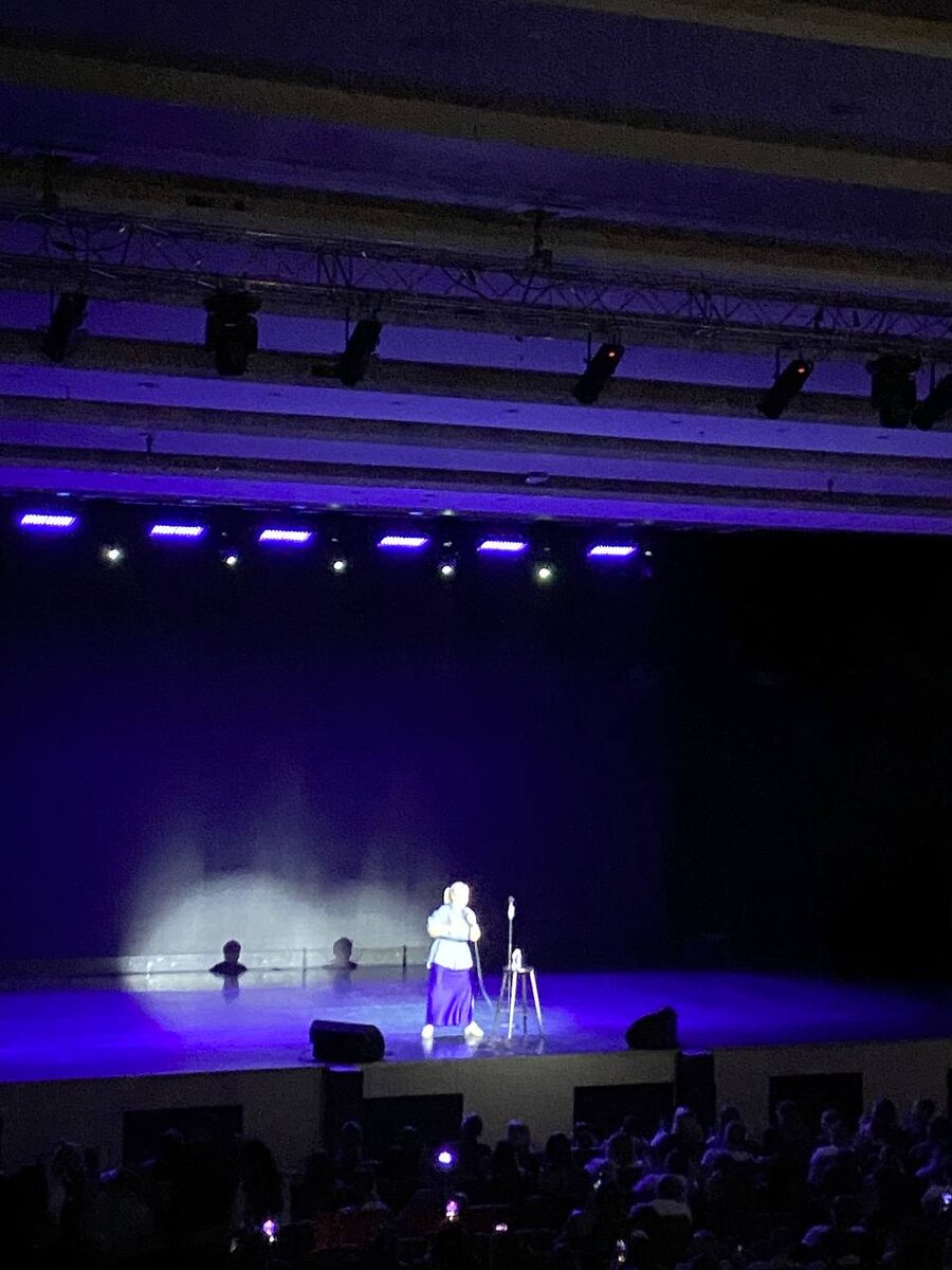 Варвара начала не сразу, видимо, ждала, когда заполнится весь зал. Меня порадовало то, что ей не требовались комики для разогрева, просто сама вышла и яро начала своё выступление. Было много энергии, отыгрыша, импровизации: по-свойски может и спеть, и сплясать. В диковинку было от того, что поёт весь зал в унисон на стенд-ап концерте. Это было реально круто. А ещё ей подарили цветы прямо на сцене, а позже в шутку она частенько обращала на них внимание.