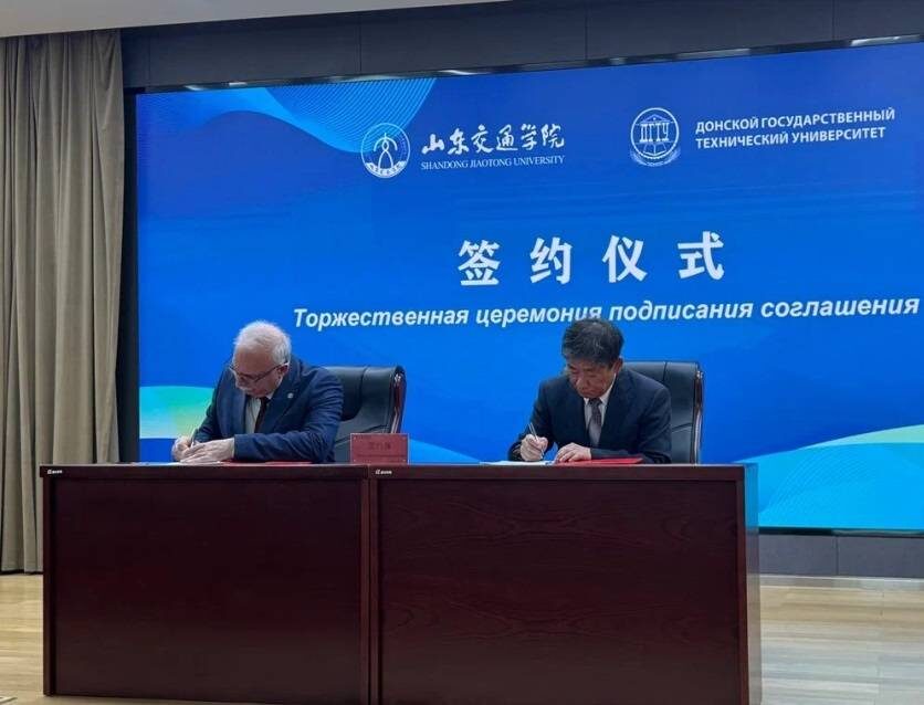В ходе посещения Шаньдунского транспортного университета (ШТУ) состоялась церемония подписания договора о реализации совместных образовательных программ между ДГТУ и ШТУ.